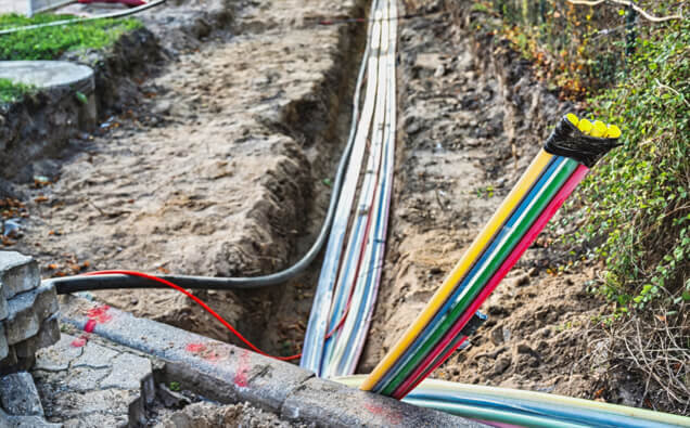 We install protected underground conduits for data, communications, and network cabling alongside electrical services with proper separation.